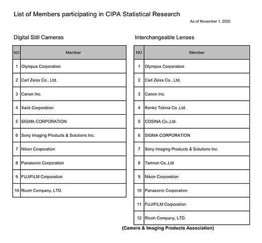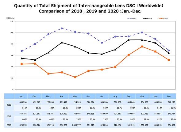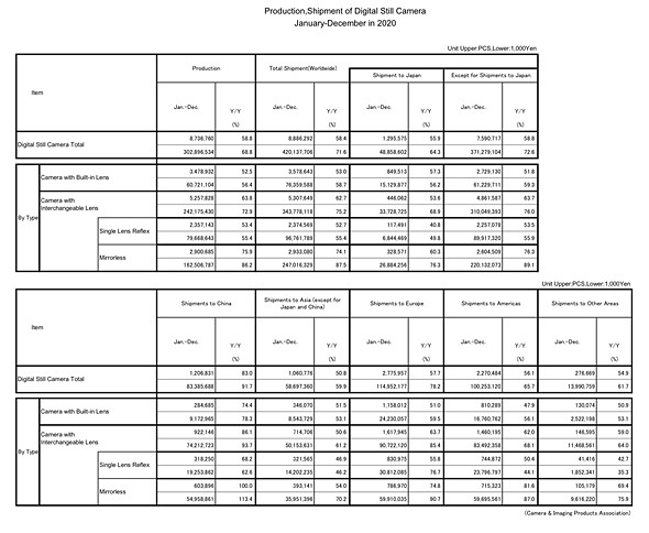 The Camera & Imaging Products Association (CIPA) has released its stats for 2020, revealing the production and shipment data of camera units from January 2020 through December 2020.