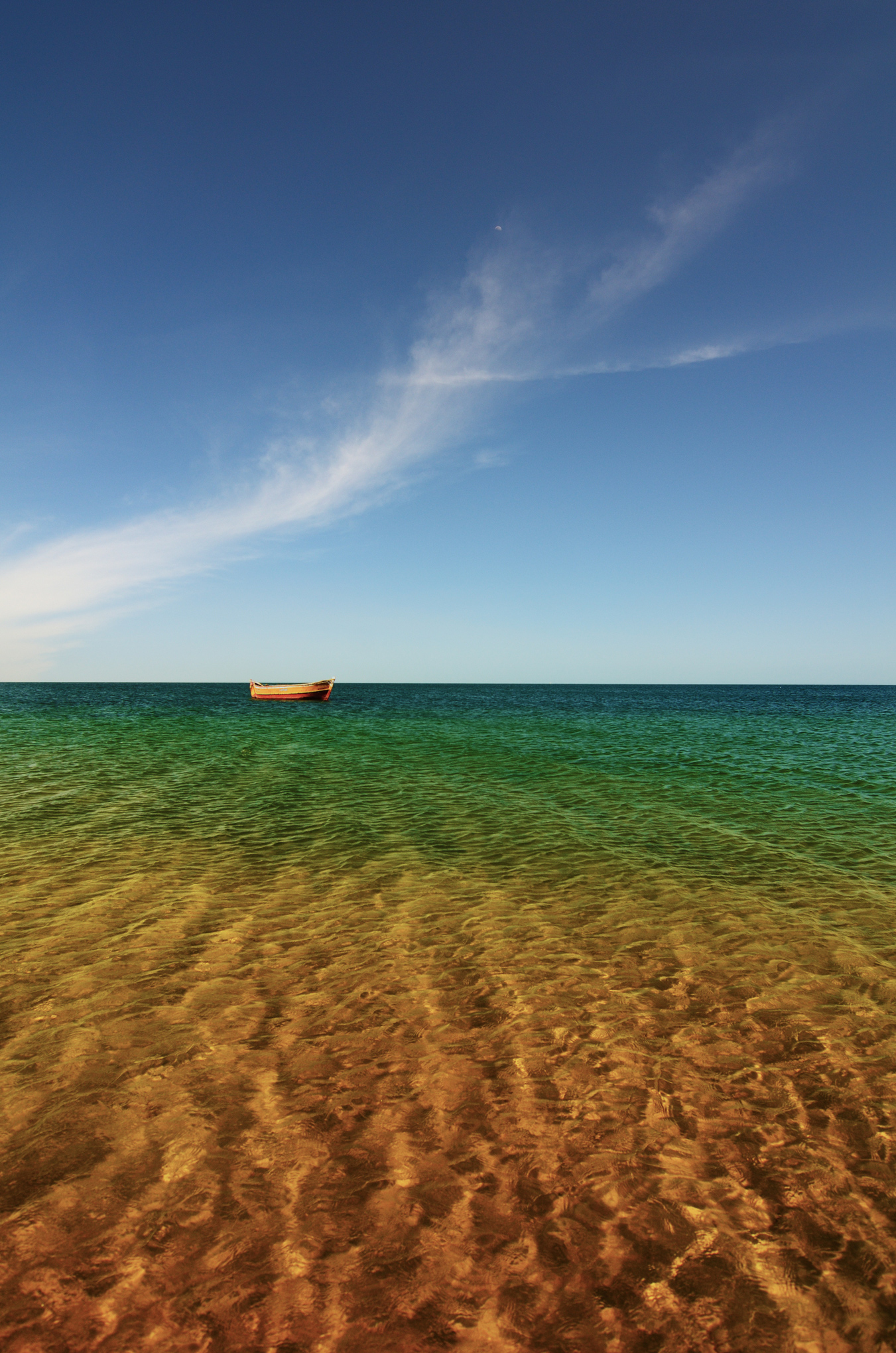 The composition has enough details in the foreground, and the subject (the boat on the left) stands out with another boat (one on the right), balancing it. But the picture would have been better with some more interesting clouds in the sky.