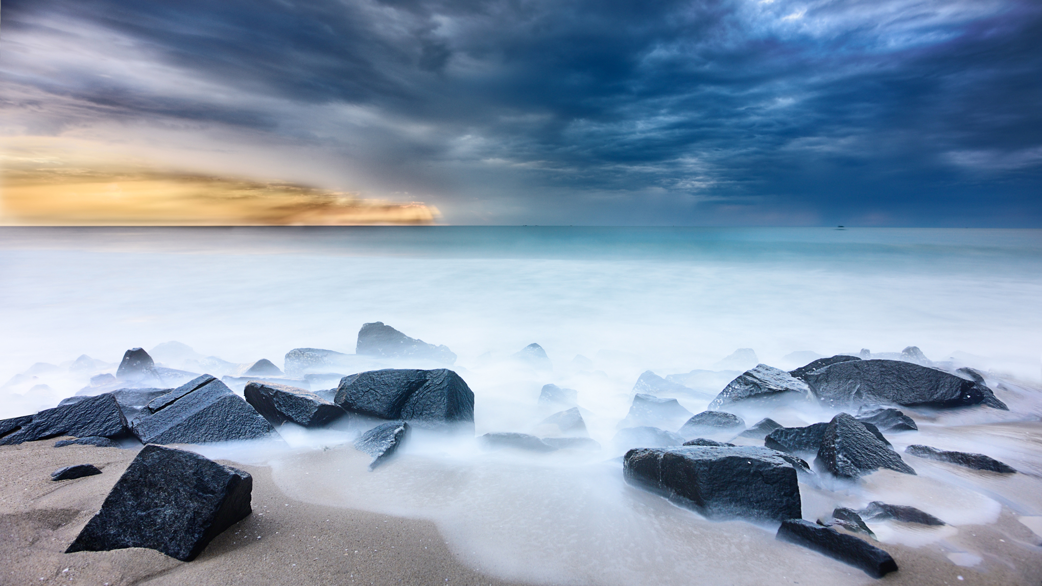 To get motion blur at the beach, you just need to point at moving water and use a long enough exposure. A few seconds will usually give you at least a bit of movement, whereas exposures like 15 seconds, 30 seconds, and beyond can turn the entire ocean into a foggy blur. That’s the effect in the image above.