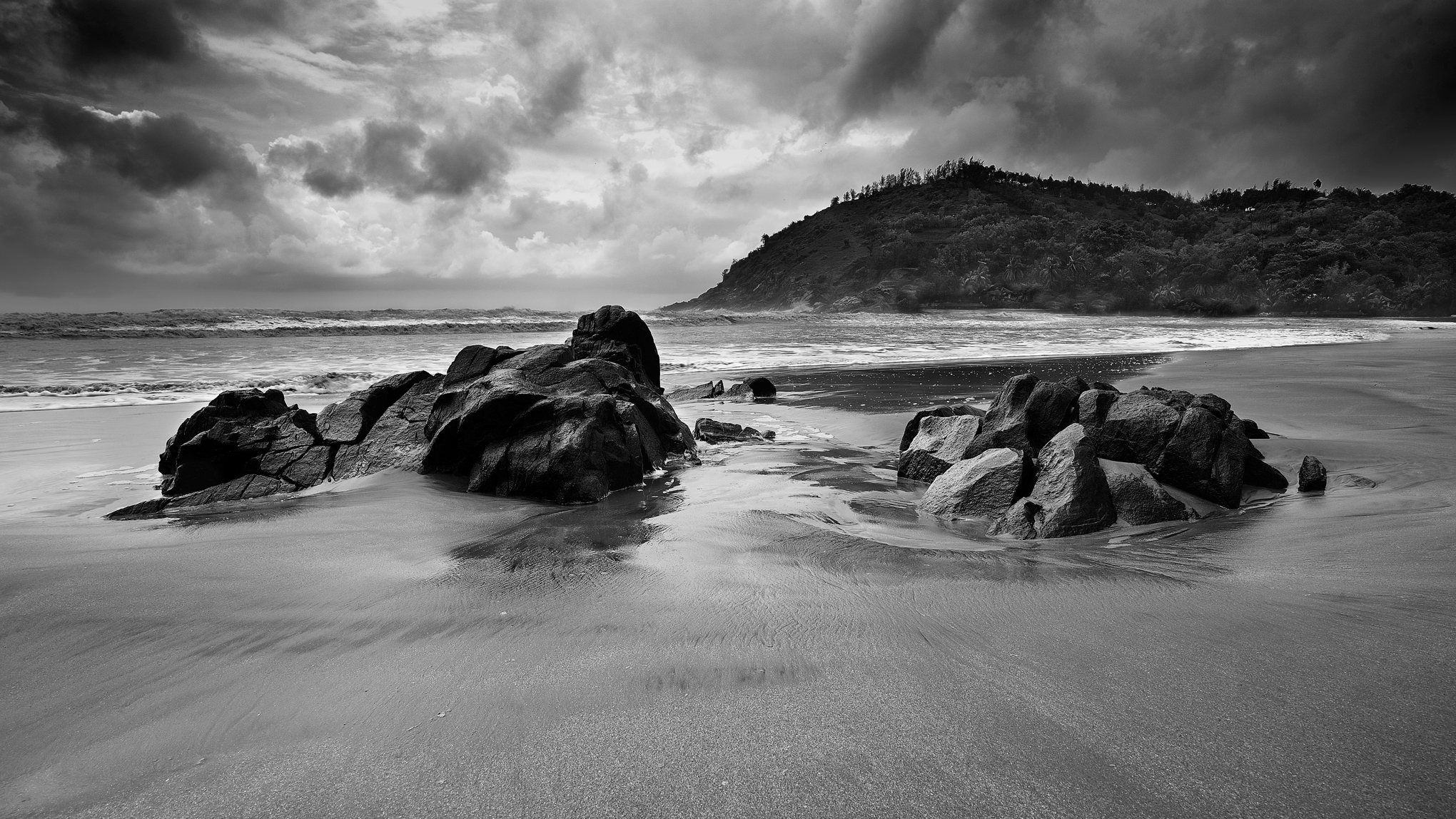 That’s where the foreground comes into play. At the beach, the most common foregrounds you’ll find are rocks, patterns in the sand, and patterns in the water. But unless the patterns in the sand and water have some especially interesting details, they may not be enough to make a strong subject. So, don’t just point and shoot in the direction of the sea, but actively look for the most interesting possible foregrounds.