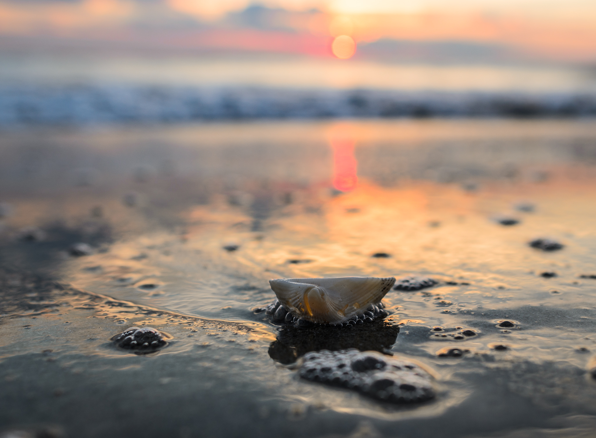 I’ve found that one of the easiest ways to deal with a challenging foreground subject in beach photography is to use a wider lens than usual. If your foreground is something small like just a few seashells or a little pattern in the sand, an ultra-wide lens (about 20mm or wider, full-frame equivalent) can make it look more prominent.