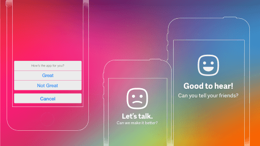 The reason why app store reviews aren’t as effective as they could be is that they’re a one-way conversation, asking the user to say something positive to everyone else. There should be something better, something more conversational, especially when things aren’t going well.