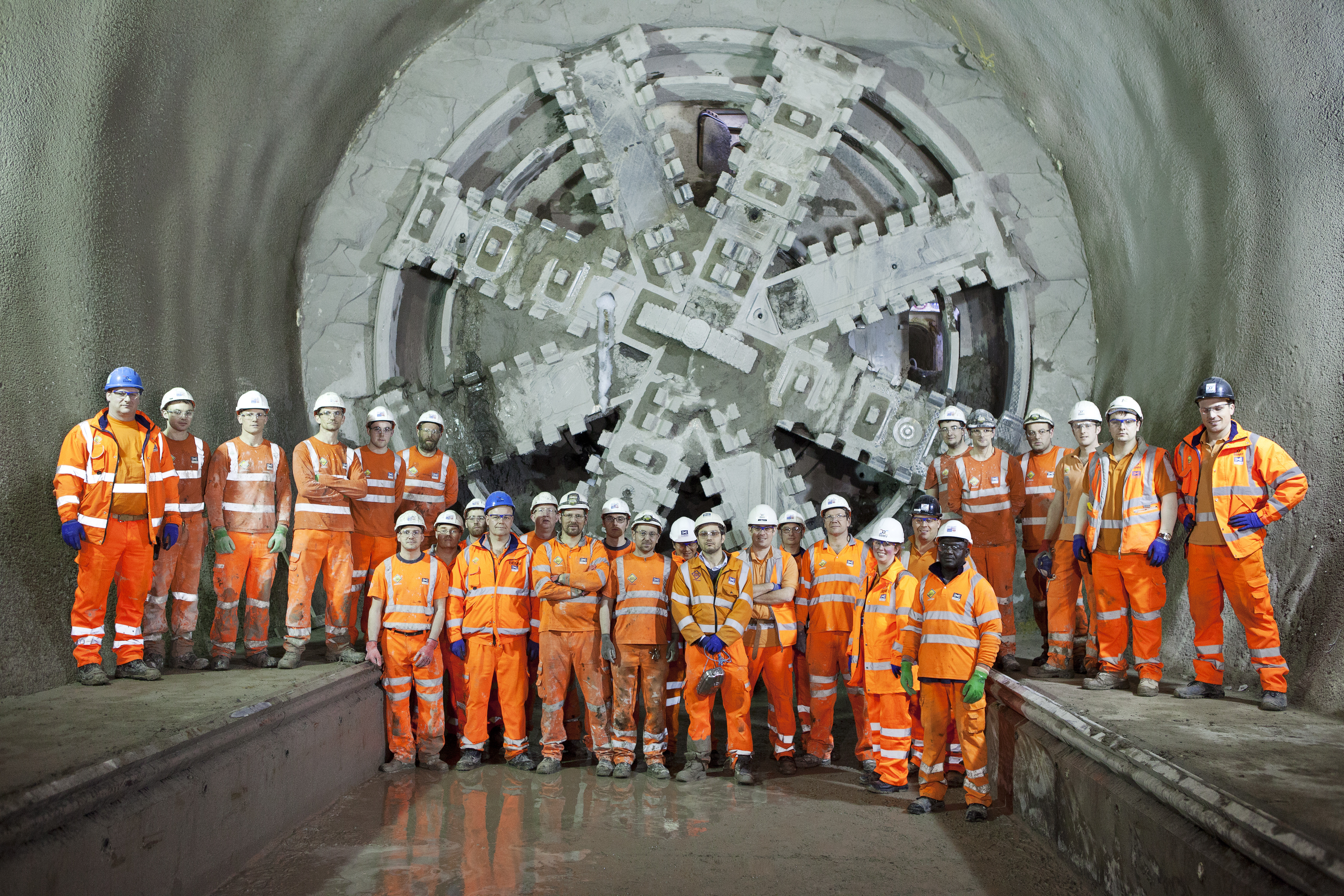 Zammit describes the people working on the project as a close-knit mining community; including nearly 10,000 workers over 40 sites, this community has links back to decades of London building projects through their fathers and even grandfathers. James O Jenkins, another photographer working on the project, says these people add an important human element to an environment he also sees as an alien place – like Star Wars or a moonscape – generally commissioned direct by Crossrail when they reach a breakthrough point, he nearly always includes people in his shot, be it workers going about their business or visiting corporate leaders or politicians. “My aunt worked on the Eurotunnel,” he says. “I remember her showing me photographs of when the French and English tunnellers met.