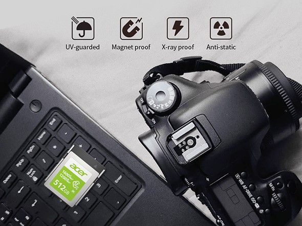While the Acer brand is most known in the computer market, these cards are designed and manufactured by BIWIN Storage Technology, which produces its own line of solid state storage and DRAM memory modules, as well as HP-branded hardware through a license, which is what it’s doing with the Acer Storage brand and these new CFexpress Type B cards.