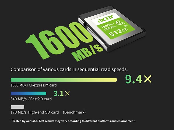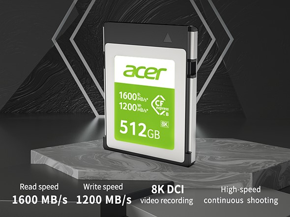 Acer Storage has announced a new line of CFexpress Type B memory cards that will see the company release three capacities with read and write speeds up to 1,600 and 1,200MB/s, respectively.