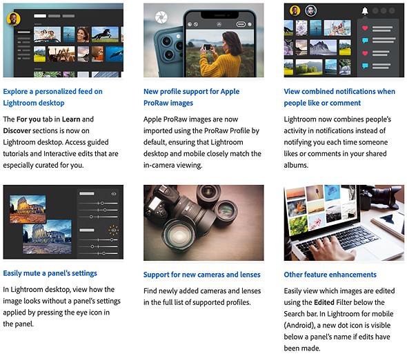Adobe has announced updates for Lightroom, Lightroom for mobile and Lightroom Classic. Lightroom desktop (version 4.2) and Lightroom for mobile (version 6.2) include numerous new features, Apple ProRaw support and additional enhancements. Meanwhile, improved performance is the primary update to Lightroom Classic (version 10.2).