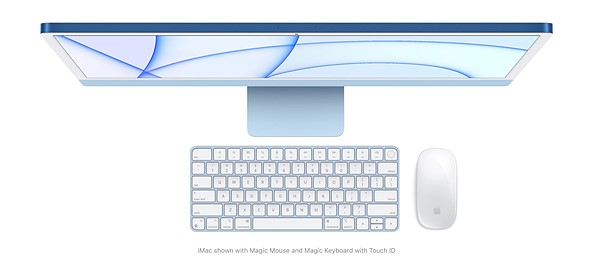 Apple has also updated its Magic Keyboard, Magic Mouse and Magic Trackpad accessories. In addition to matching the colors of the new M1 iMacs for all of the devices, Apple has also made three distinct Magic Keyboards. The first one is a basic Magic Keybaord that features an identical layout to that found on the iPad Pro Magic Keyboard; the second one features the same layout and includes a built-in Touch ID button and the third features the Touch ID button and adds a number pad.