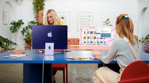 The new iMacs come in two models: one with a 7-core GPU and one with an 8-core GPU. The 7-core GPU iMac models start at $1,299 with 8GB of unified memory, 256GB of SSD storage and two Thunderbolt ports. The 8-core GPU iMac models start at $1,499 with 8GB of unified memory, 256GB of SSD storage, two Thunderbolt ports and two USB-C ports. Memory and storage can be increased for additional costs for both units. The 7-core GPU iMacs are limited to blue, green, pink and silver colors, while the 8-core units include yellow, orange and purple.