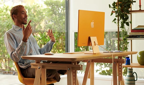 Apple has also updated the camera inside the iMac, adding a 1080p camera with a larger sensor. Apple says the new sensor works with the image signal processor inside its M1 chip to get the most out of the sensor, similar to the machine learning-powered technology inside Apple’s latest iPhone devices. This computational approach to video allows for real-time AWB, AE, face detection, fusion of variable exposures and local tone-mapping for high dynamic range scenes. Audio capture abilities have also been upgraded, with a three-microphone array featuring beamforming technology to focus on you, ignoring background noise.