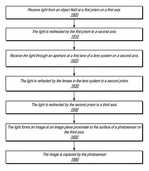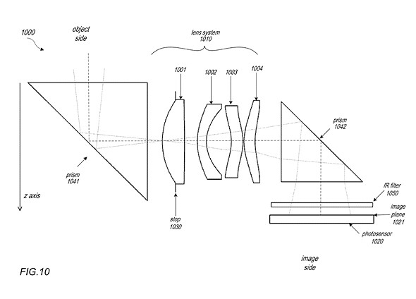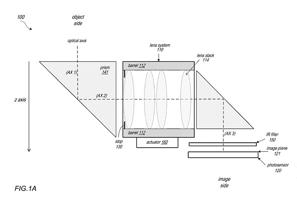 UPSTO patent number 11,061,213 lays out the framework for a folded camera system that uses a pair of prisms, a lens array and an image sensor to create a telephoto-style camera system, complete with autofocus and/or optical image stabilization. This kind of ‘periscope’ camera module is nothing new in the smartphone world as Samsumg, Xiaomi, Vivo and others have developed similar mechanisms. But we believe this to be the first granted patent from Apple showcasing the schematics and description for a folded camera module.
