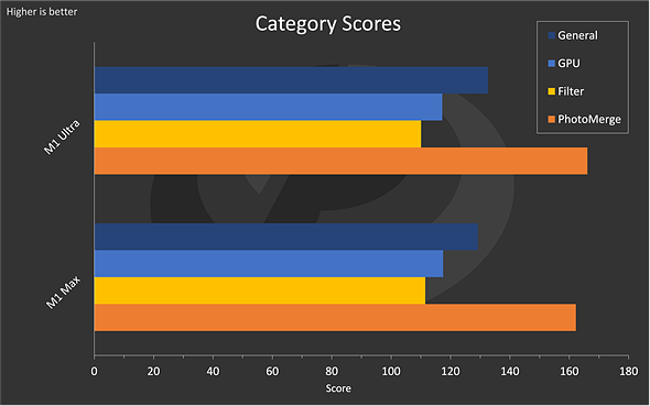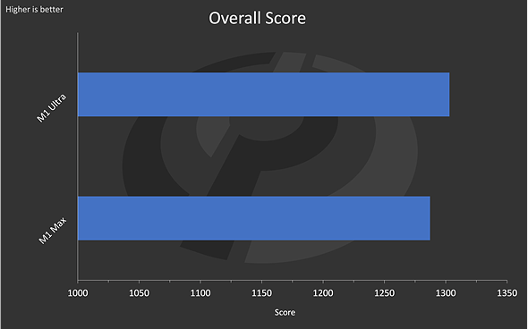 While the M1 Ultra Mac Studio does unseat the M1 Max version as the highest scoring computer we’ve ever tested in PugetBench, it only beats the M1 Max by about 1.2% overall.