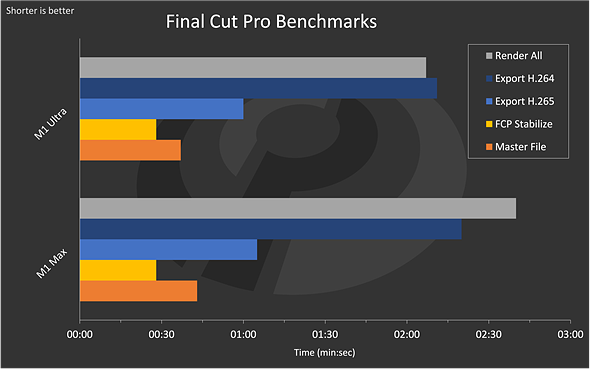 Unfortunately, even using an optimized version of Final Cut, the M1 Ultra wasn’t able to provide the 2x performance bump we were hoping to see.