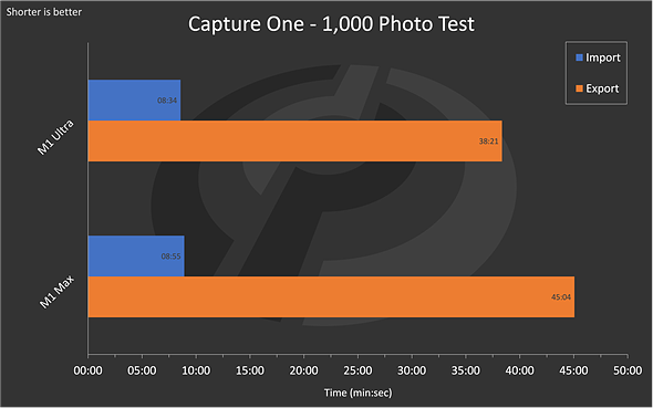 Capture One, for example may benefit from further optimization. The latest update made import and preview generation about 2x faster on both the M1 Max and M1 Ultra, but even if you throw a ton of high-resolution photos at the program, there’s barely any difference in performance between these two machines.