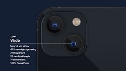 The wide camera module features sensor-shift image stabilization technology while the ultrawide lacks any stabilization. Cinematic Mode (1080p at 30 fps) will also be available on the iPhone 13, including the ability to adjust the depth of field effect after recording.