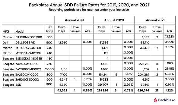 Last month, cloud storage and data backup company Backblaze released its 2021 Annual Report for hard drive failure rates. Like in previous years, the report focused on failure rates for hard disk drives (HDD). However, yesterday, for the first time, Backblaze released a special follow-up to its 2021 Annual Report focused on solid-state drives (SSD).