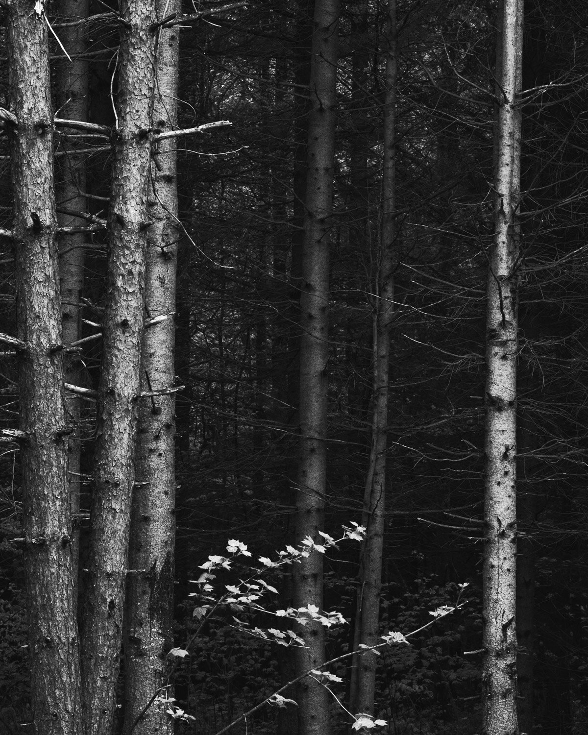 As for the composition, I wish I had adjusted the tripod just a few inches lower so the lowest leaf of the tree was not so close to the edge of the frame. While this could be amended by removing the lower branch in Adobe Photoshop using the clone tool – which would likely help strengthen the composition as well, since it would not threaten to take the eye out of the scene with its downward diagonal line – I much prefer to leave nature messy and chaotic as it is.