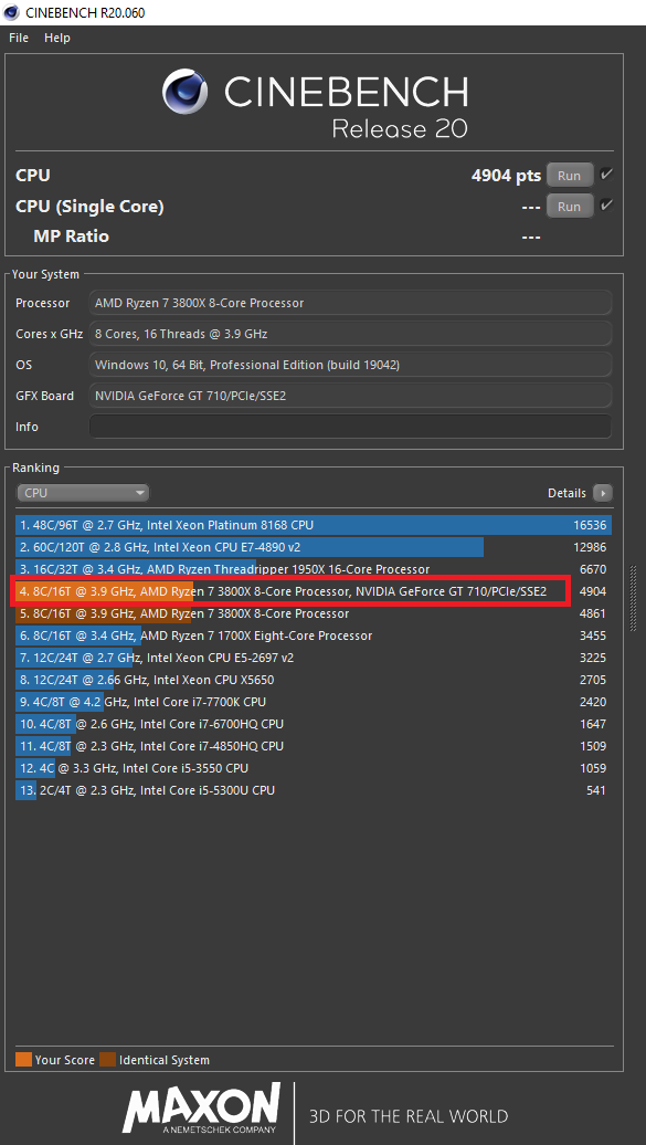 After building the PC with the above specifications, I ran the R20 benchmark to see how well it worked. Below are the results for multi-core and single-core performances.