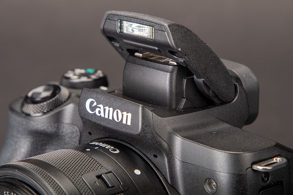 The built-in flash on the EOS M50 Mark II can be handy for some fill light or can be used to fire other off-camera flashes in a pinch. |