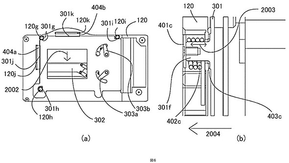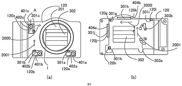 The solution outlined in Canon’s new patent doesn’t translate very well, but here’s the translated text nonetheless: ‘An image pickup device 100 has an image pickup element 103a for taking an image of a subject, a shutter 110 for controlling an exposure time of the image pickup element by traveling a shutter blade 302, and moving the shutter in a plane orthogonal to an image pickup optical axis. It has a holding member 120 that can hold the shutter, and first urging members 402a to 402c that urge the shutter in the first direction in the plane. The shutter has contact portions 301g to 301i that abut on the positioning portions 120g to 120i provided on the holding member and position the shutter at a predetermined position in the first direction. The shutter can move from a predetermined position against the urging force of the first urging member, and the image pickup apparatus is a first cushioning member that abuts on the shutter that returns to the predetermined position by the urging force of the first urging member. It has 404a and 404b. [Selection diagram] FIG. 5.’