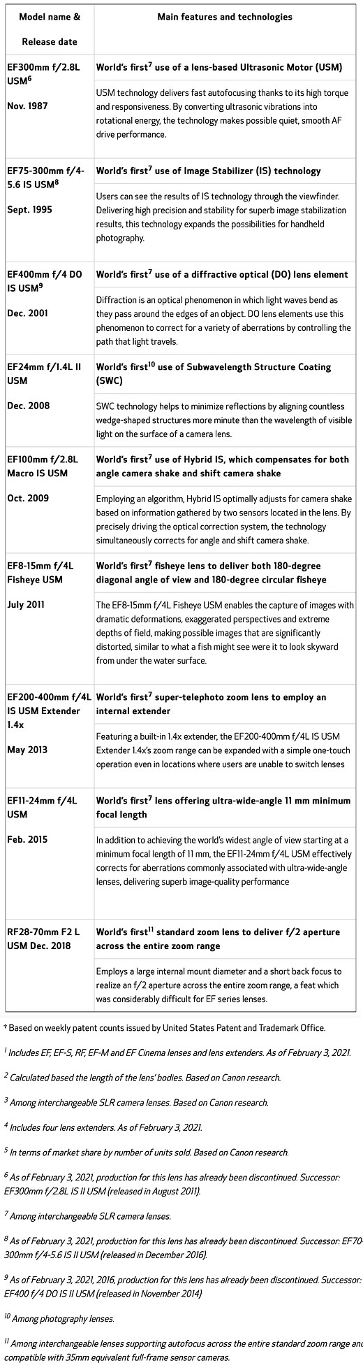 Canon also uses the press release to note ‘world’s first’ features many of its EF and RF lenses have brought over the years (note many of the ‘firsts’ have footnotes that disclaim how the title was determined).