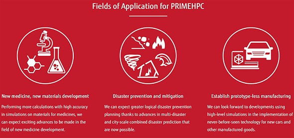 | Fujitsu PRIMEHPC supercomputer have numerous applications, including aiding in establishing a product development and manufacturing cycle that isn’t reliant upon prototypes. Image credit: Fujitsu |