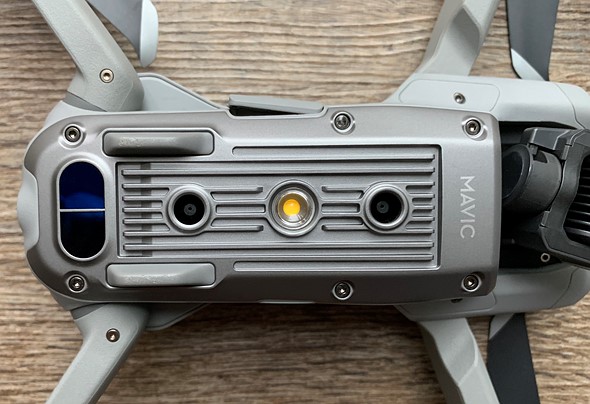 | The bottom of the Magic Air 2 includes obstacle avoidance sensors and an auxiliary light. |