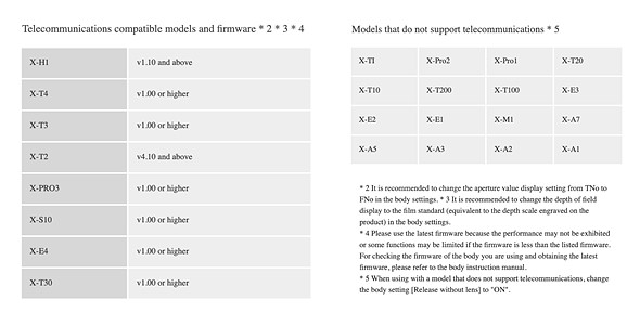 The fully-manual lens features an electronic chip for transferring EXIF data to the camera body from the lens, which should enable focus verification, parallax correction and in-body image stabilization for compatible cameras. Below is a pair of charts showing which X system cameras are and aren’t able to make use of the lens mount communications of the Nokton 35mm F1.2 lens: