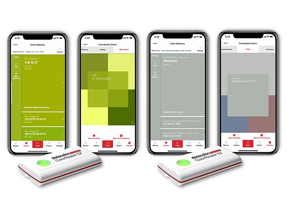 The portable, Bluetooth® connected ColorReader EZ device works in conjunction with the ColorReader mobile app (available for both iPhone and Android). The ColorReader app displays the exact measurement data in CIELAB, Hex and RGB as well as the three closest paint colour matches from the most popular paint brands. In addition to the RAL and NCS colour standards, the app includes colour fan decks from Farrow & Ball, Sikkens and also the colour set of Savage Universal who specialise in photography backgrounds, which makes ColorReader EZ especially interesting for portrait and studio photographers. In total, up to 20,000 colours are available for convenient access.