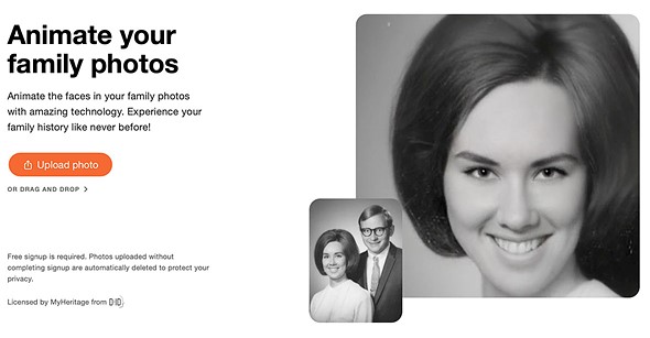 The online genealogy company MyHeritage has launched a new AI-powered service, Deep Nostalgia. This new service animates family photos (or other photos, as we’ll see) to allow users to ‘experience your family history like never before.’
