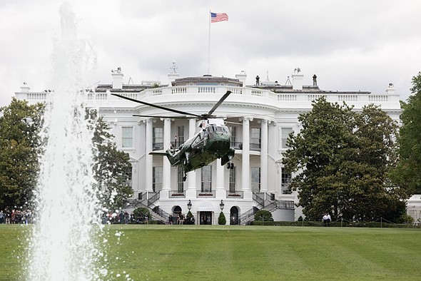 Marine One, carrying President Donald J. Trump, lifts-off from the South Lawn of the White House Tuesday, May 14, 2019, for the flight to Joint Base Andrews, Md., where President Trump will board Air Force One for his trip to Louisiana. (Official White House Photo by Joyce N. Boghosian)