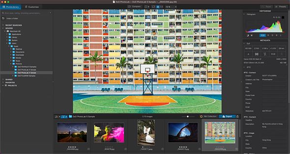 DxO PhotoLab is more than a photo editor. It also includes asset management tools. PhotoLab 5 processes IPTC and EXIF data and syncs with third-party applications. For example, if you adjust metadata in Lightroom, it updates nearly instantly in PhotoLab 5. Library management is also improved thanks to advanced keyword prioritization and an interactive keyword tree structure.