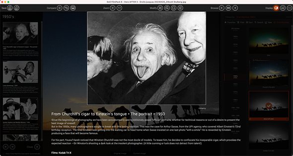 While new film renderings and editing tools are excellent additions, the new Time Machine feature is perhaps even more interesting. DxO writes, ‘DxO FilmPack 6 provides users with a true journey through time, offering an introduction to the history of analog photography from its creation to the present day. The software introduces a new way of displaying creative and analog renderings separated into 14 periods illustrated by legendary, iconic images, and famous figures in photography. Each photograph is documented from a technical and historical perspective, and users are provided with the closest rendering so they can apply it to their images and recreate a similar style and finish.’ With Time Machine, users can learn about historic photos and the processes used to create them. Users can then apply a similar film rendering to their images.