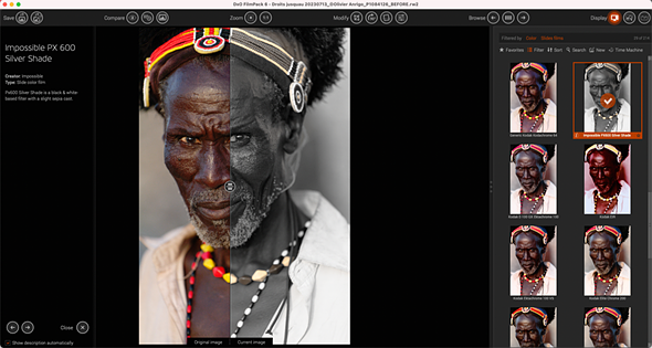 DxO FilmPack 6 includes 15 new film renderings. Among these is Kodak Ektachrome Professional Infrared EIR Color Slide Film and Impossible PX 600 Silver Shade instant film for the Polaroid 600 camera. DxO has also added seven Film Simulations from Fujifilm X Series cameras and six cinematic renderings based on current trends in cinematography.