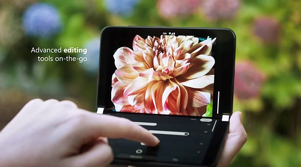 The dual AMOLED PixelSense Fusion Displays open up to 8.3″ (diagonally) and offer a combined resolution of 2688 x 1892 pixels (401 PPI). Microsoft says the 90Hz displays cover 100% of sRGB and DCI-P3 color spaces and top out at 800 nits max brightness. Both displays are covered by Corning’s Gorilla Glass Victus.
