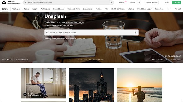 Unsplash’s website includes easy access to millions of free stock images |
