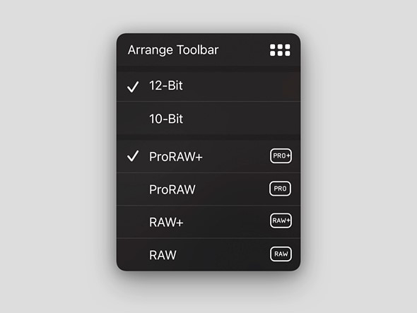 | A list of Raw and ProRAW shooting options the Halide team has implemented into its camera app. |