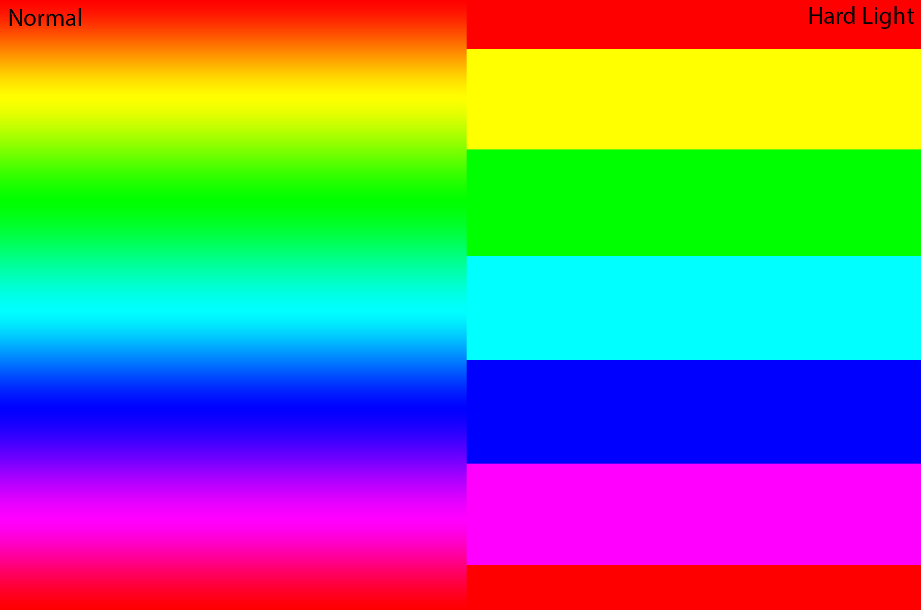 The Hard Light blend mode converts all the RGB colors to its nearest base color. Take a look at the illustration below to understand.