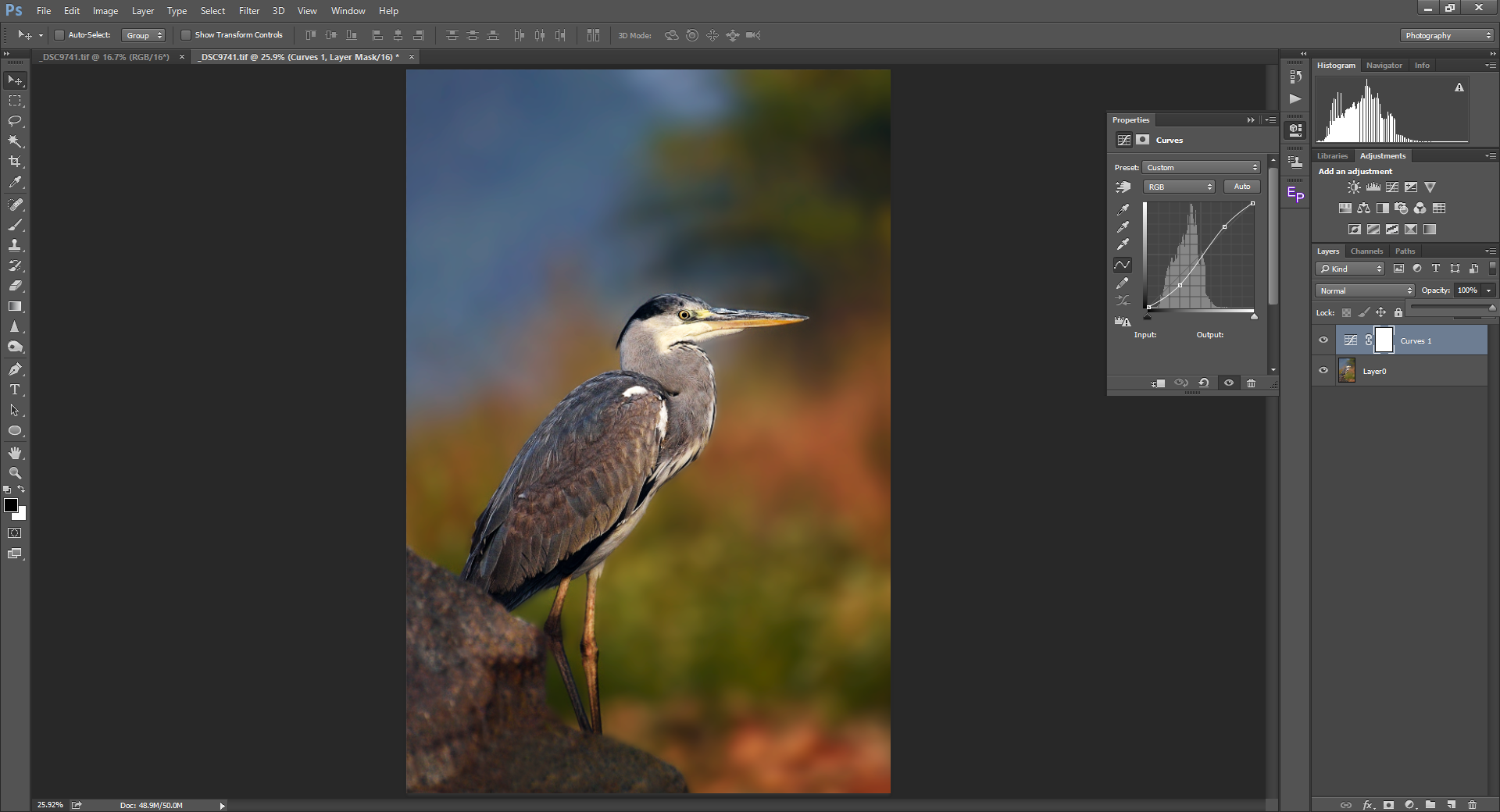 The screenshot above shows a simple curves adjustment layer to enhance the contrast of the image. In addition to contrast, you can also notice that color has been oversaturated and the hue has shifted to be much redder. These sorts of shifts are relatively common when doing a curves adjustment, but they’re not always what you’ll want.