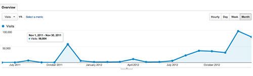 If you hid November in that chart, you would never be able to tell that there was a meaningful spike in traffic. That post did not make a long-term impact on anything, all because I didn’t have a good way to turn those visitors into regular readers.
