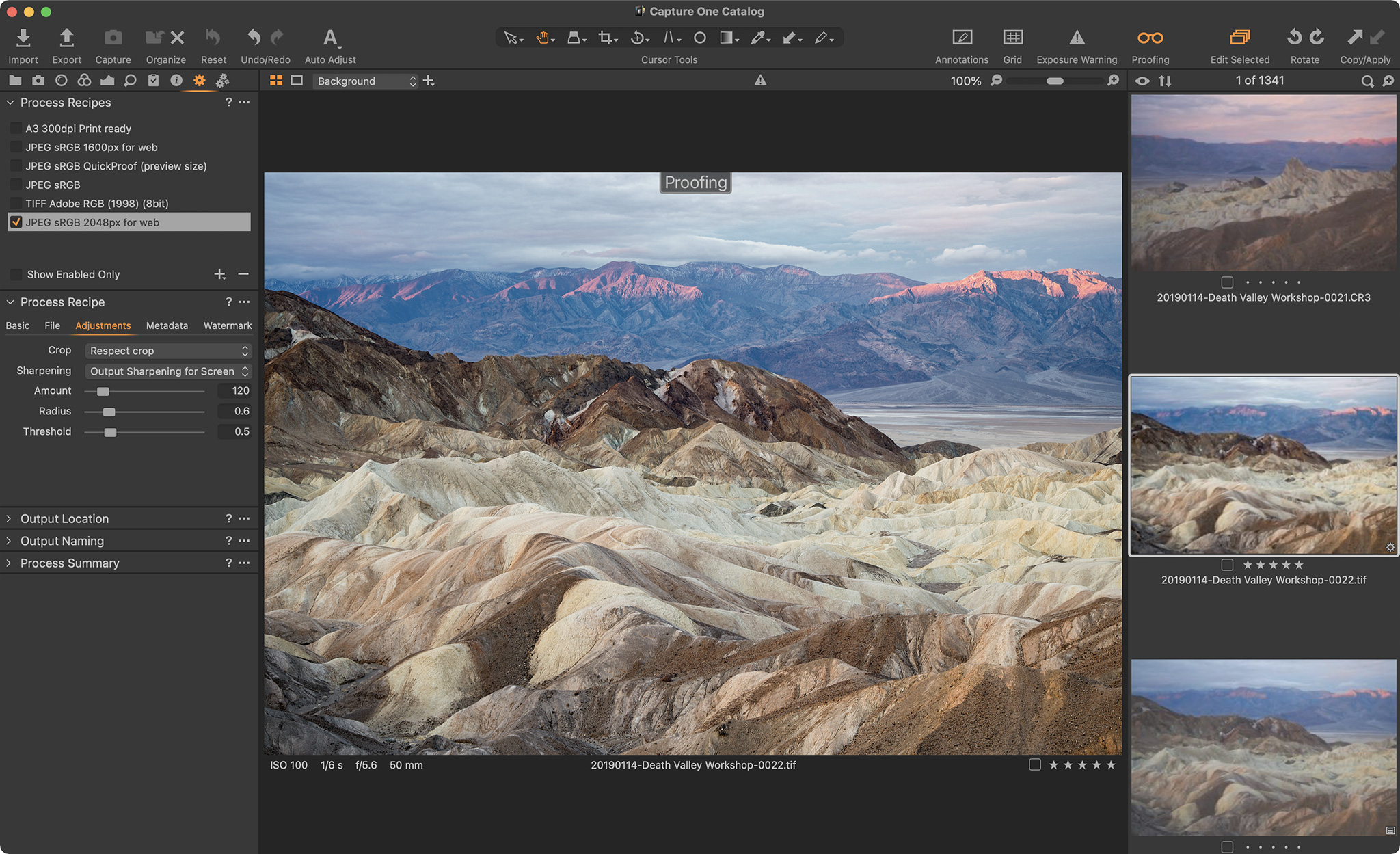 Capture One Recipe Proofing Screenshot