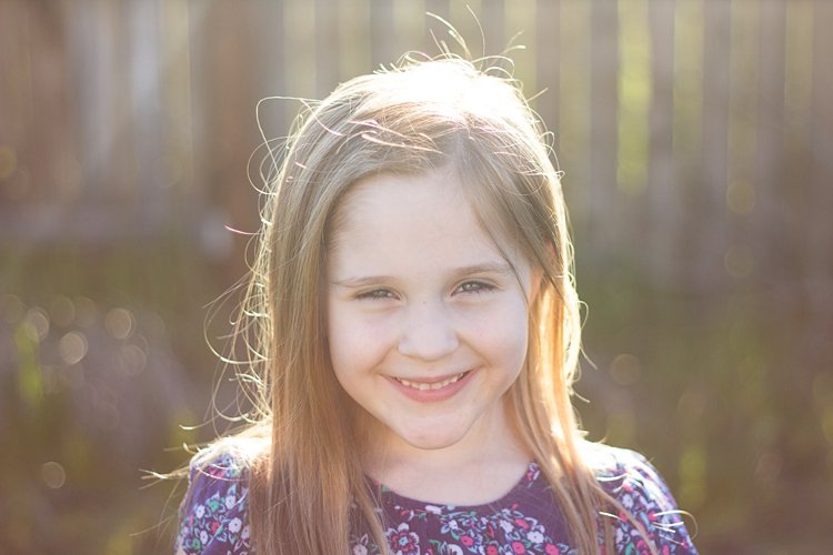 In this instance, I was photographing my daughter in our backyard at about 6:30pm. My starting (12 o’clock) position was with the sun behind her.