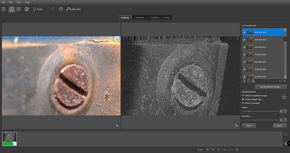| The depth map that Helicon Focus produces can be adjusted with the radius and smoothing sliders |