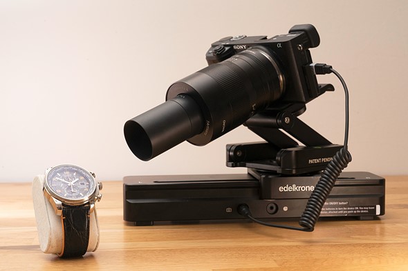 | This watch shot was comprised of 50 images taken with a Sony a6300 and 18-55mm lens at F7.1. The camera was a set to 1/25th at ISO 100. The images were blended in Helicon Focus. |