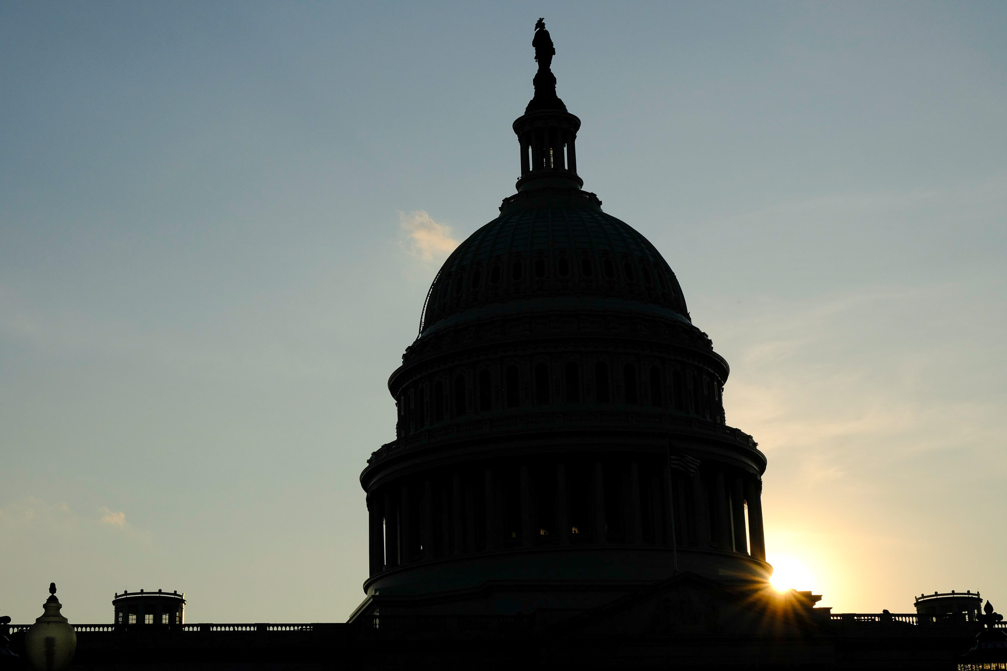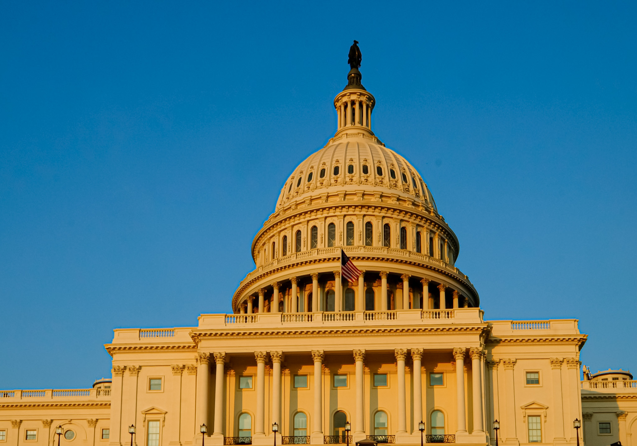 Capitol dome from the opposite side, with the evening sun lighting the building.