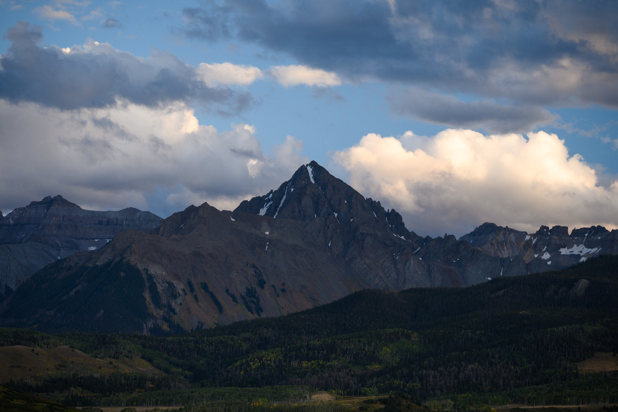 Here’s how this looks in practice. First, focus on a subject in the center of the image. Below, I chose the peak of the mountain because it was at infinity and had lots of little details. Remember to take these photos at your lens’s widest aperture: