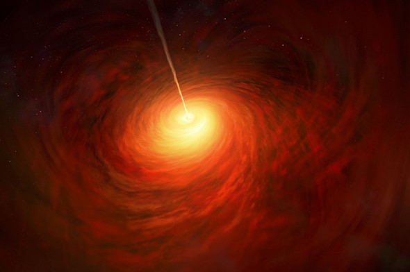 | An artist’s rendition of the black hole at the center of the M87 galaxy. Image credit: ESO/M. Kornmesser |