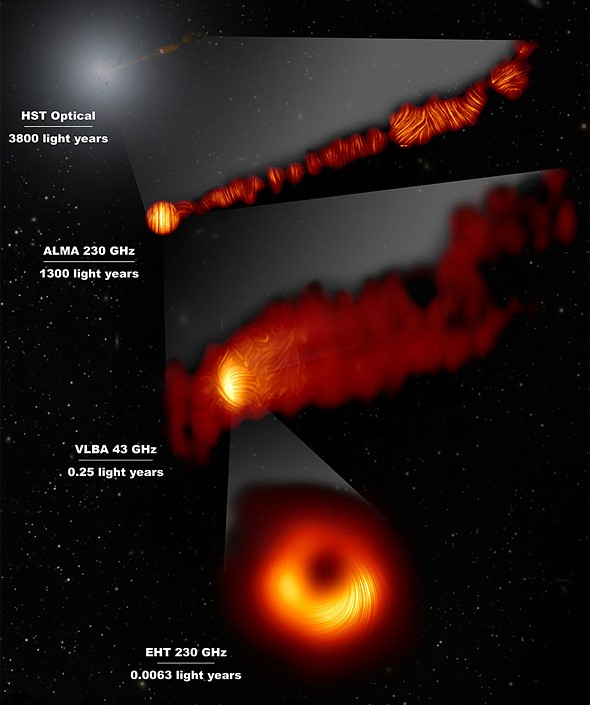 | Image credit: EHT Collaboration; ALMA (ESO/NAOJ/NRAO), Goddi et al.; NASA, ESA and the Hubble Heritage Team (STScI/AURA); VLBA (NRAO), Kravchenko et al.; J. C. Algaba, I. Martí-Vidal |