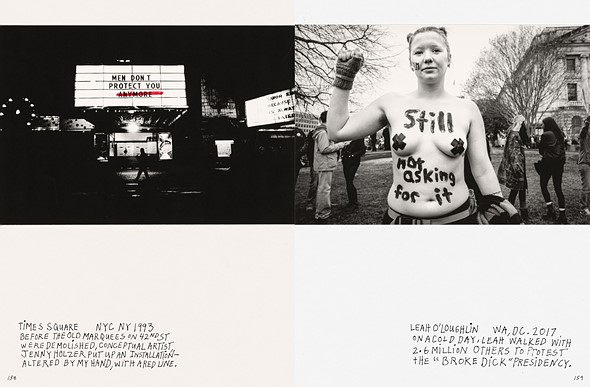 It was difficult handwriting all those captions in Holy, I had to write those so many times. I’d be writing all night long, I was really angry at all the things that were happening at the time too – to women, to our abortion rights, to children being taken away from the mother’s at the border and being put into cages. I was emotionally distraught, and I’d be writing every night and scratching through things and cutting into pictures.