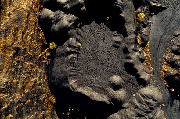 As a photographer, aesthetically it’s an exercise in losing dimensionality. The drone flattens everything. It makes these big three-dimensional things totally flat and I think that is an interesting way to deal with patterns and to create patterns. On the ground, you don’t see it, but from above you can flatten space.