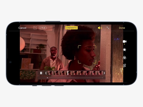 A new video capture feature, called Cinematic Mode, has also been added to Apple’s latest devices. This new feature, limited to 1080p at 30 fps, uses AI and Apple’s depth mapping technology to track subjects and rack focus automatically with the ability to change the depth of field even after shooting, just as you can with the still photo Portrait Mode. You can also refocus the video after-the-fact.
